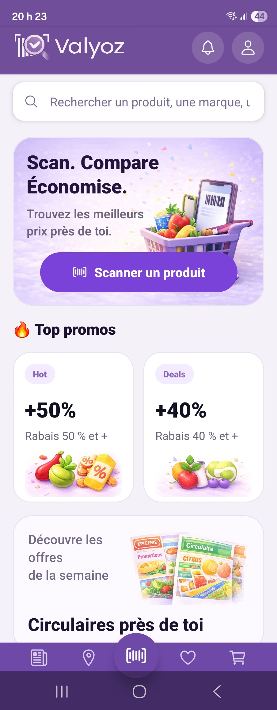 Valyoz affiche en temps réel les prix dans chaque bannière près de vous.